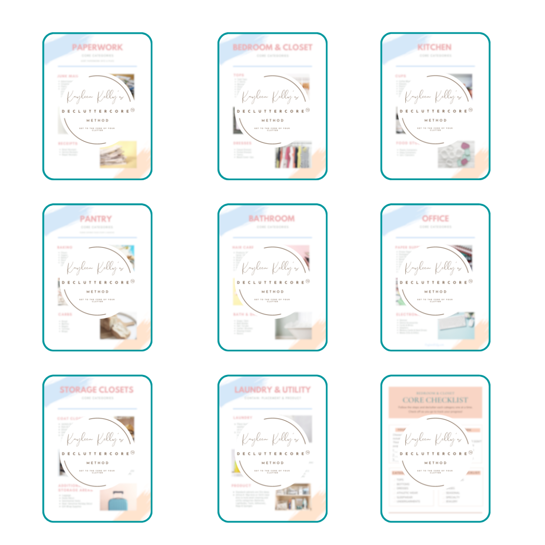 Once you learn HOW to Declutter & Organize in the Handbook you apply it with The CORE Packets (50+ pages) 8 companion guides for each space in your home. Includes the Core categories, where things go, product recommendations and a Core checklist to keep focused and track progress!